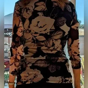 Semi sheer flowered material and black bodice