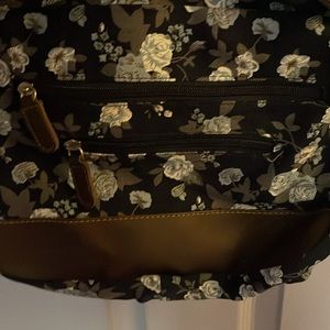 Brand new floral denim purse, 4 pouches, adjustable strap. Two main pouches, two front, pleather bottom