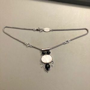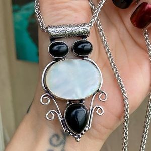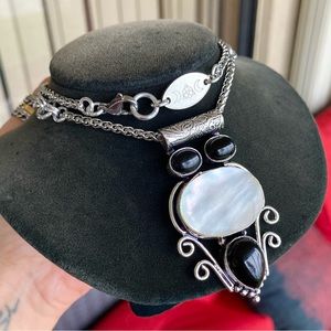 925 Sterling silver overlay black onyx & white mother of pearl gemstone necklace