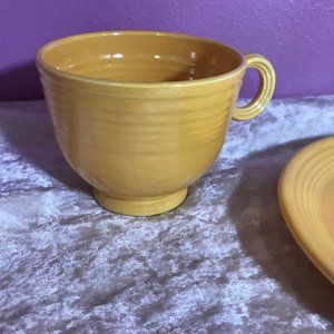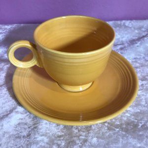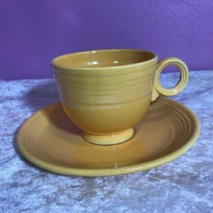 Genuine Fiesta Vintage Yellow Mug with Matching Saucer GUC Retro Kitchen Tea Cup