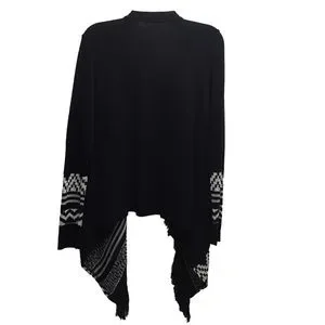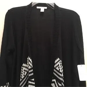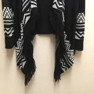 Canyon River Blues Sweater Black & white Open Front Cardigan Fringe Size Medium New NWT