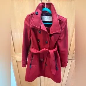 Burberry Brit Funnel Neck Wool Cashmere Twill Trench Coat