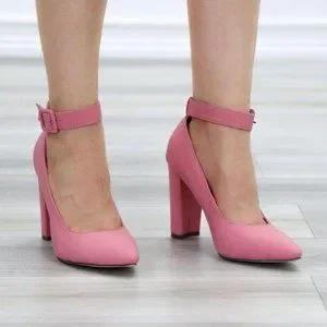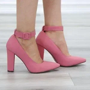 Pink Pointy Toe Ankle Brace Buckle Heels