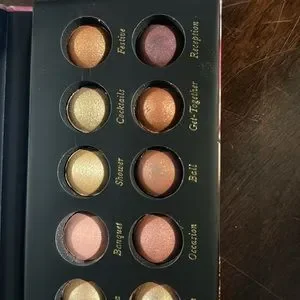 Beautiful shades with great glimmer, shimmer, and pigment. Received for Christmas but is not a good pallet for my skin. Gently tried a few shades.