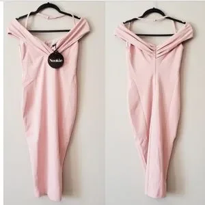 NOOKIE: Athena Off Shoulder Light Pink Midi Dress (NWT)