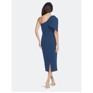 DRESS THE POPULATION Tiffany One-Shoulder Midi Dress Peacock Blue Plus Size XXL