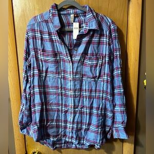 Pilcro Seamed Plaid Tunic Buttondown