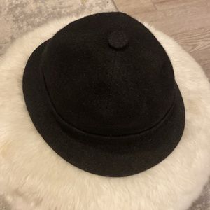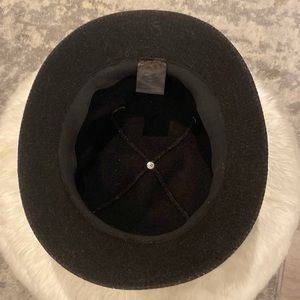 This is a black Kangol bucket hat with gold kangaroo on the side. Size extra large size up to 7 3/8 although I’m a female modeling hat it’s too big for me and would look better on a man. It