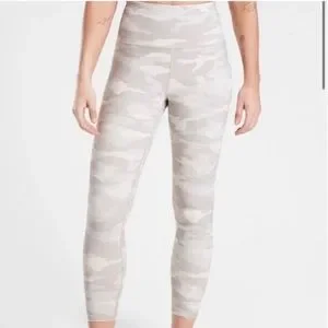 ATHLETA Gray Cream Camo Elation 7/8 Tight Gym Workout Leggings Size XS