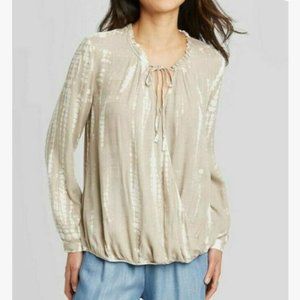 KNOX ROSE Neutral Tie Dye Peasant Blouse