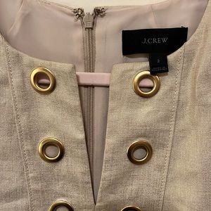 J Crew Linen Dress Metallic Gold Grommet Pockets Short Sleeves