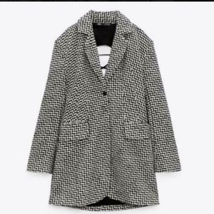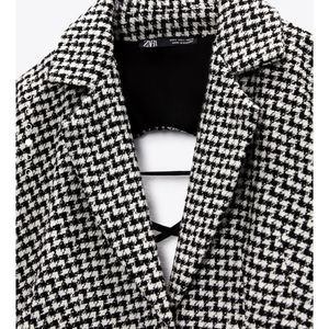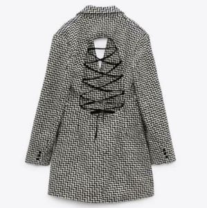 NWT Zara * Houndstooth Textured Tweed Blazer Dress Cut Out Size XS S