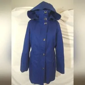 Kristen Blake Winter Jacket Blue Hooded, ZipUp Snaps, Pockets, Insulated Lined,M
