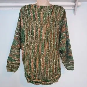 EUC Santoori Green & Tan Sequin Oversized Sweater