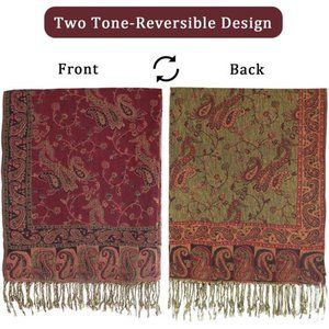 Two Tone Paisley Pashmina Shawl Wrap Scarf Women's Soft Jacquard Scarves
