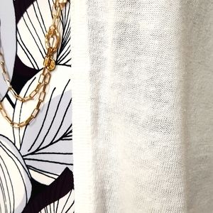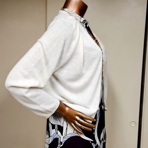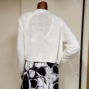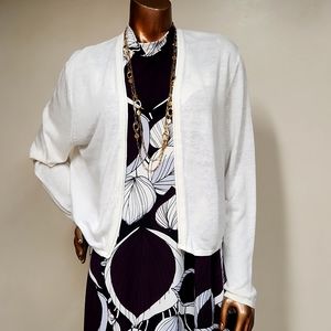 Winter White knit lightweight open front Cardigan with Ribbed accent trim.