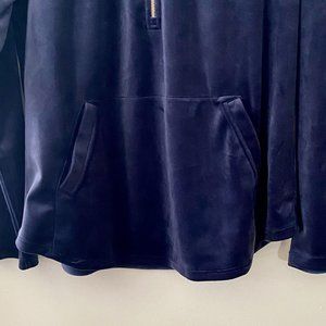 Warm up from an early morning chill or in any air-conditioned space with Lilly Pulitzers Skipper Round Hem Ruffle Velour Popover. The half-zip design, curved hem, sleeve cuff and welt pockets bring some ease and excitement to the style. Lilly pro-tip: Outerwear is an important part of every Resort season wardrobe. This lounge velour is soft to the touch and the perfect addition to your cozy season wardrobe.