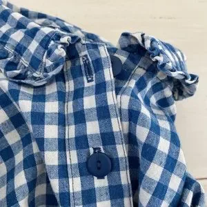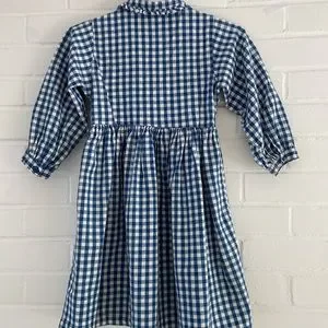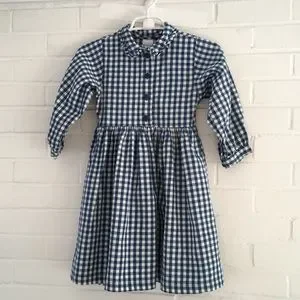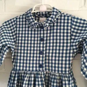 Hannah Andersson classic checkered dress. Ruffle on collar. Buttons on front chest area. Hand pockets. Oversized-flouncy fit. Please see all pictures for a better detailed description.