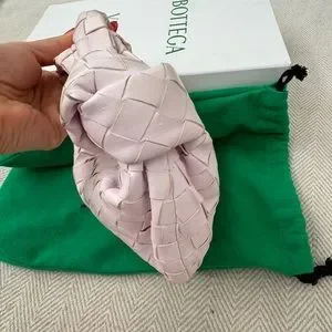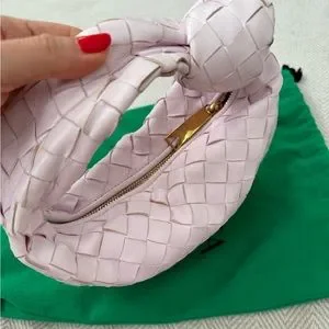 The classic Bottega Veneta mini Jodie bag in the color dream wash. This is a powder pink color that surprisingly matches just about anything you can wear- literally!