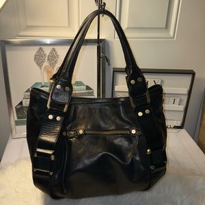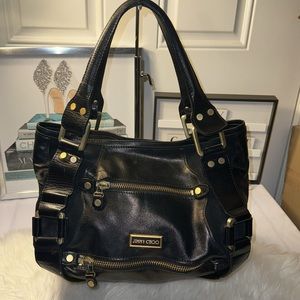 Jimmy Choo Mahala Purse Large Black Leather Double Handle GUC