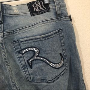 ROCK & REPUBLIC Jeans Boot Cut Distressed Light Wash Low Rise Bling Back Pockets