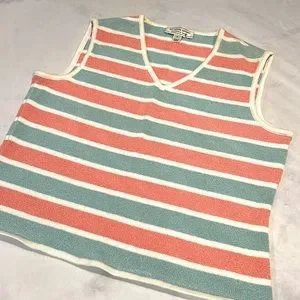 St. John Sport by Marie Gray knit sleeveless v neck striped sweater
