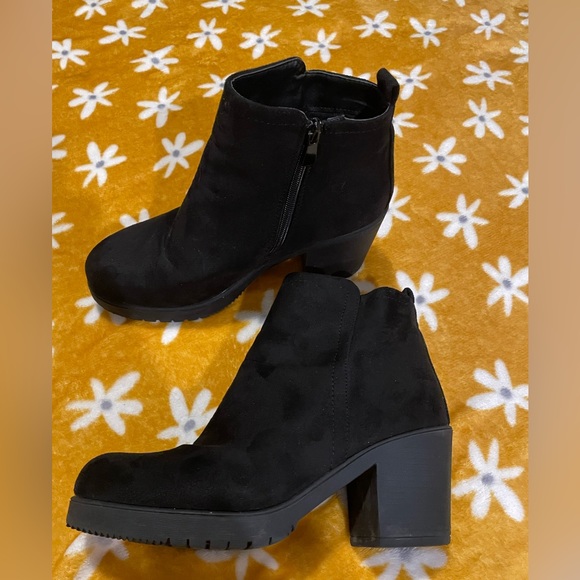Black booties, size 9, faux suede, very comfy