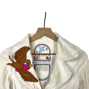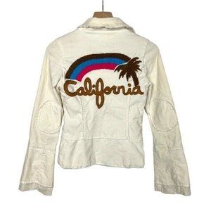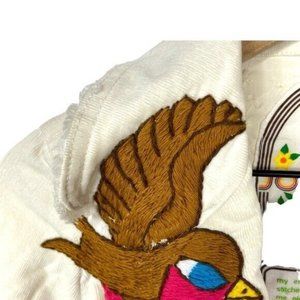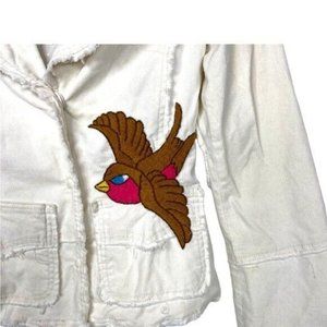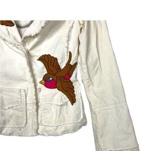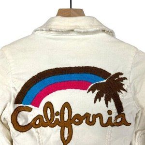 Embroidered Corduroy Blazer Jacket in an Ivory Cream White with birds on the front and California design along the back. Lined with Eyelet fabric.