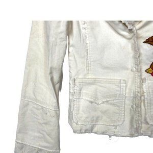JOYSTICK BY JOHNNY WAS Womens Sz S Hand-Embroidered Ivory Corduroy Blazer Jacket