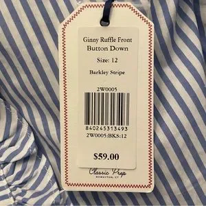 Adorable Classic Prep Ruffle Front Button Down Top "Ginny" Size 12 New with Tags