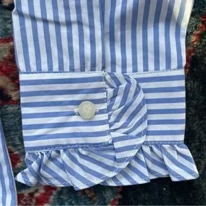 Beautiful ruffle details down front and at cuffs and adorable lighthouse buttons