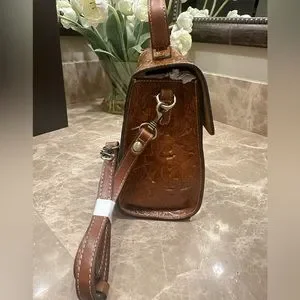 The Tooled Claire Satchel, a centerpiece of this set, boasts intricate tooling that adds a touch of artistic flair to its design. The detailed craftsmanship not only enhances its visual appeal but also highlights the dedication to creating a piece of wearable art. The satchel's spacious interior is designed to accommodate your daily essentials, offering both style and practicality in one.