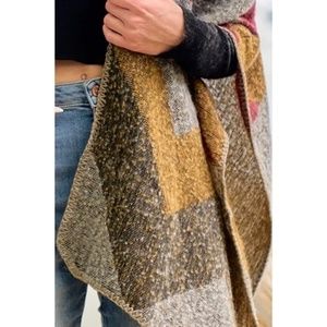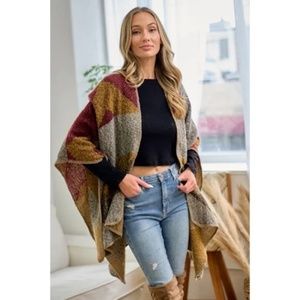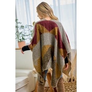 SOLD OUT Wine Multi Color Knit Shawl Open Wrap Geo Block Cardigan Sweater