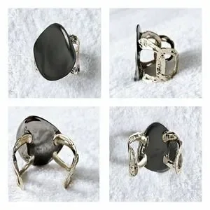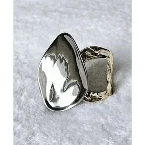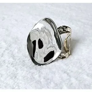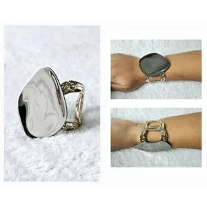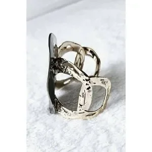 Slip-on style link cuff is in a vintage pewter gold hue and the liquid detail in a ruthenium-tone.