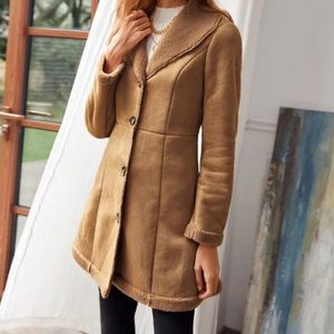 Cozy Camel Tan Sherpa Lined Vegan Suede Jacket Coat