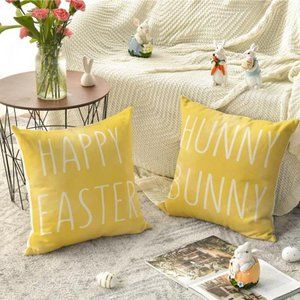Easter Decorative Throw Pillow Covers Cases Bunny Spring Decor Yellow Accent