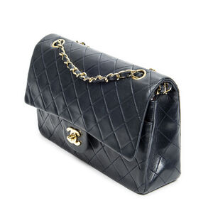 Chanel Shoulder Bag Classic Double Flap 26 in Navy Blue Quilted Lambskin Leather and Gold hardware. The product is in Excellent Condition (A).