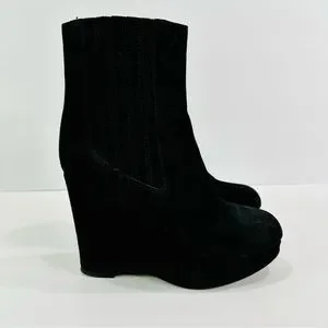๐ JUICY COUTURE SEUDE BLACK PLATFORM 4 1/2โ WEDGE HEEL WORN ONCE SIZE 10 ITALY
