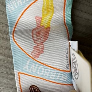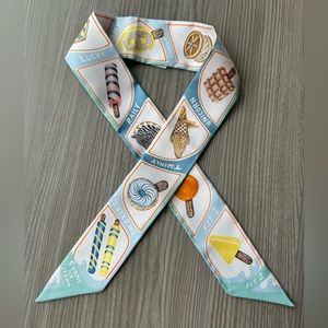 Brand new in box with tag. Hermes funny ice cream twilly, 100% silk. Comes with original box.