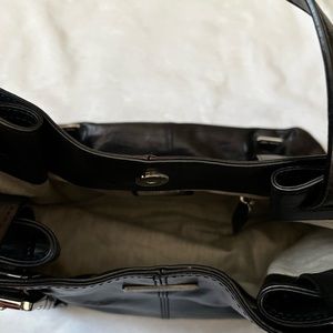 This black Michael Kors bag is a large shoulder bag. I’m still not sure if it’s a tote or not but it doesn’t change the product. It has plenty of space and a removable strap.
