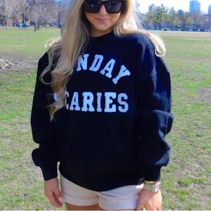 When you overdid it on Saturday night but already had brunch plans for Sunday the Sunday Scaries Sweatshirt has got you covered. Pair it with sneakers and jean shorts, or even over your swimsuit to the pool. Whatever way you do it, you will get the most compliments on this effortless look. If you want it oversized size up.