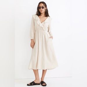 NWT Linen Cotton Ruffle Neck Midi Dress