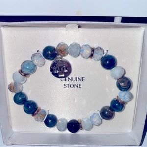 Beautiful Women’s beaded genuine stone stretch bracelet with silver faith and cross charms