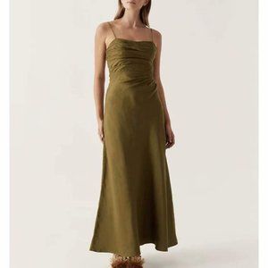 Aje Clarice Draped Maxi Dress AU10/US6 Deep Olive