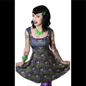 - Kreepsville 666 Kattitude Marilyn Spooky Cat Retro Halloween goth dress in a skater style