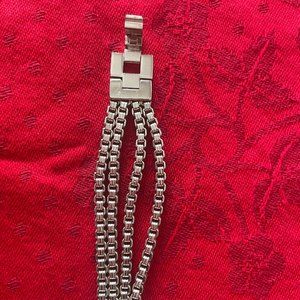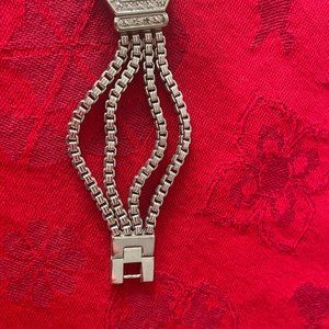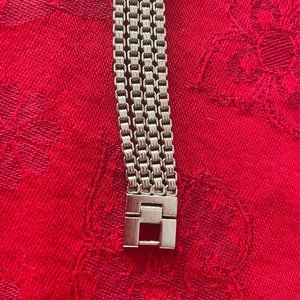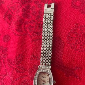 7.25" JULES JURGENSEN VINTAGE WOMENS LADIES SILVER STAINLESS STEEL LEXUS WATCH. MOTHER OF PEARL DIAL. LUXURY DESIGNER QUARTZ WATCH 7798W.