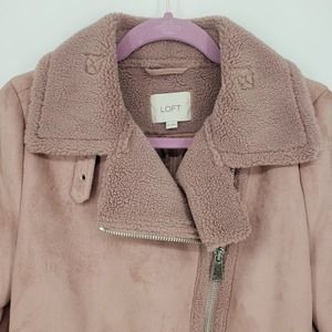 LOFT Faux Suede Aviator Jacket XS Sherpa Moto Asymmetrical Zip Up Mauve Pink