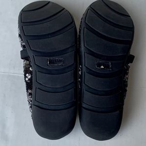 Stuart Weitzman Black Claire Sequin Patent Ballet Flats Mary Jane Elastic Size 4