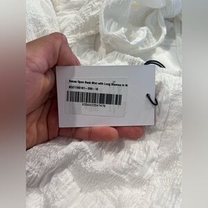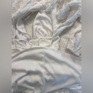New With tags! I bought this beautiful long sleeve open back button down mini dress from Showpo (SANAA MINI DRESS - LONG SLEEVE OPEN BACK DRESS IN WHITE) for engagement pictures but never ended up wearing it. It is double lined, size small and in perfect new condition. Seersucker texture.