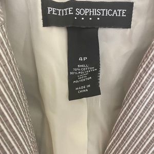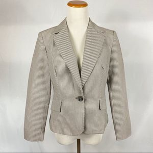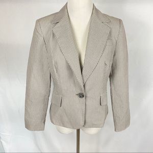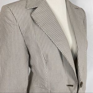 PETITE SOPHISTICATE Seersucker Beige Tan Striped Blazer Jacket One Button